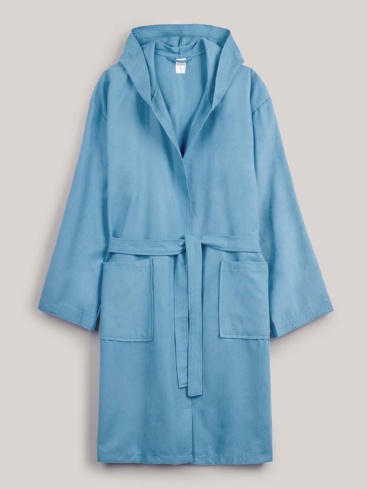 Roupão de banho para adulto em microfibra, de cor lisa.