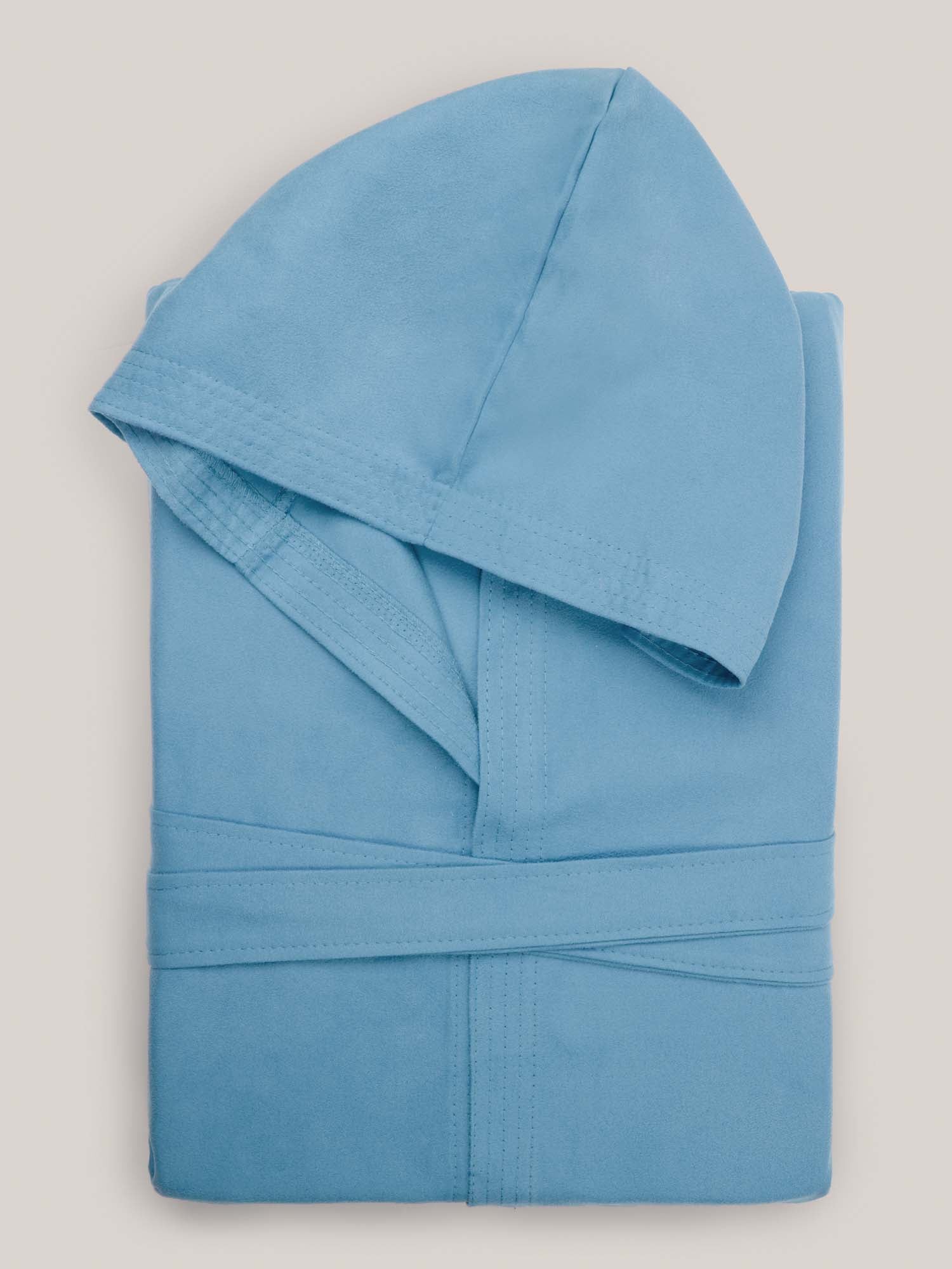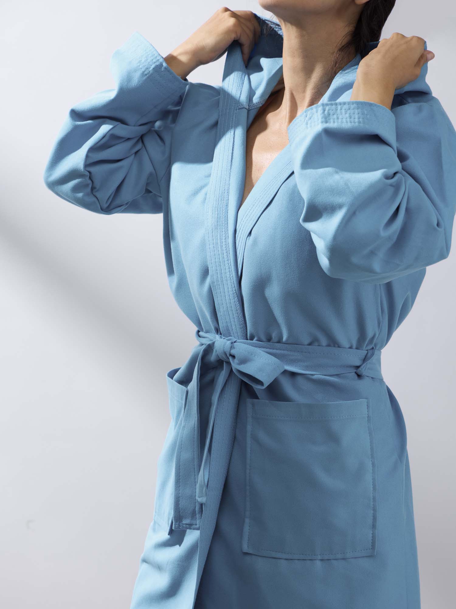 Um roupão de banho em microfibra de alta qualidade e cor lisa.