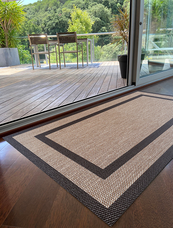 Alfombra técnica de nueva generación con atractivos diseños. Fabricada en tejido de vinilo, antideslizante, resistente al roce, a la humedad y con un innovador acabado sin ribete que le aporta una estética limpia y sofisticada. Versátil y elegante, esta alfombra es ideal para cualquier estancia del hogar, sea interior o exterior y especialmente para zonas de alto uso. Repele el polvo y el pelo de mascotas y es idónea para personas con alergias. Práctica, se puede fregar y no requiere tintorería. Destino: Interior / Exterior