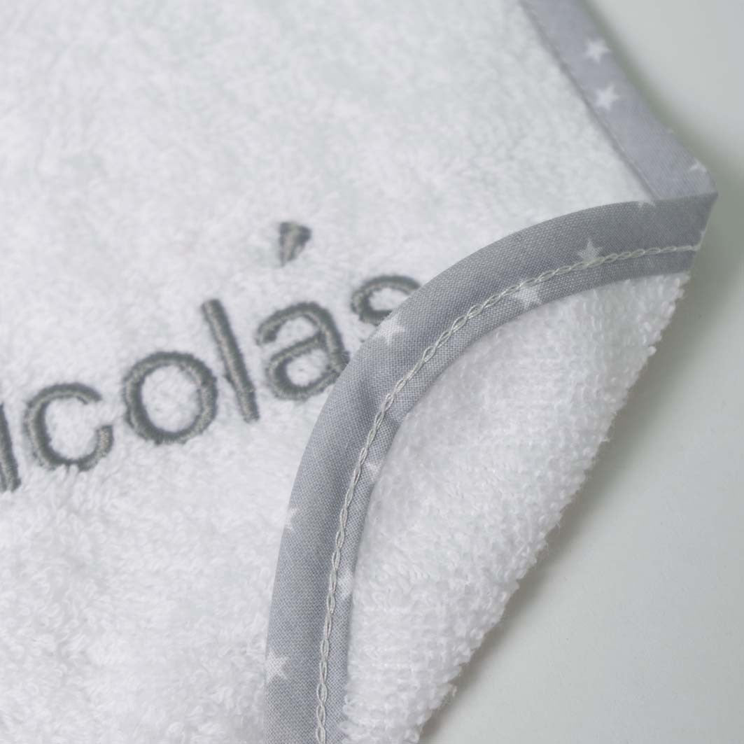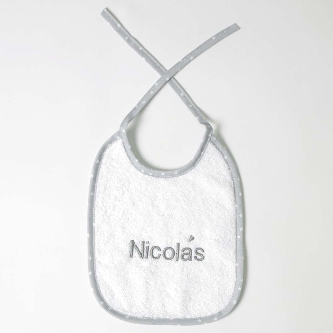 Babador Terry bco/nome bordado cinza