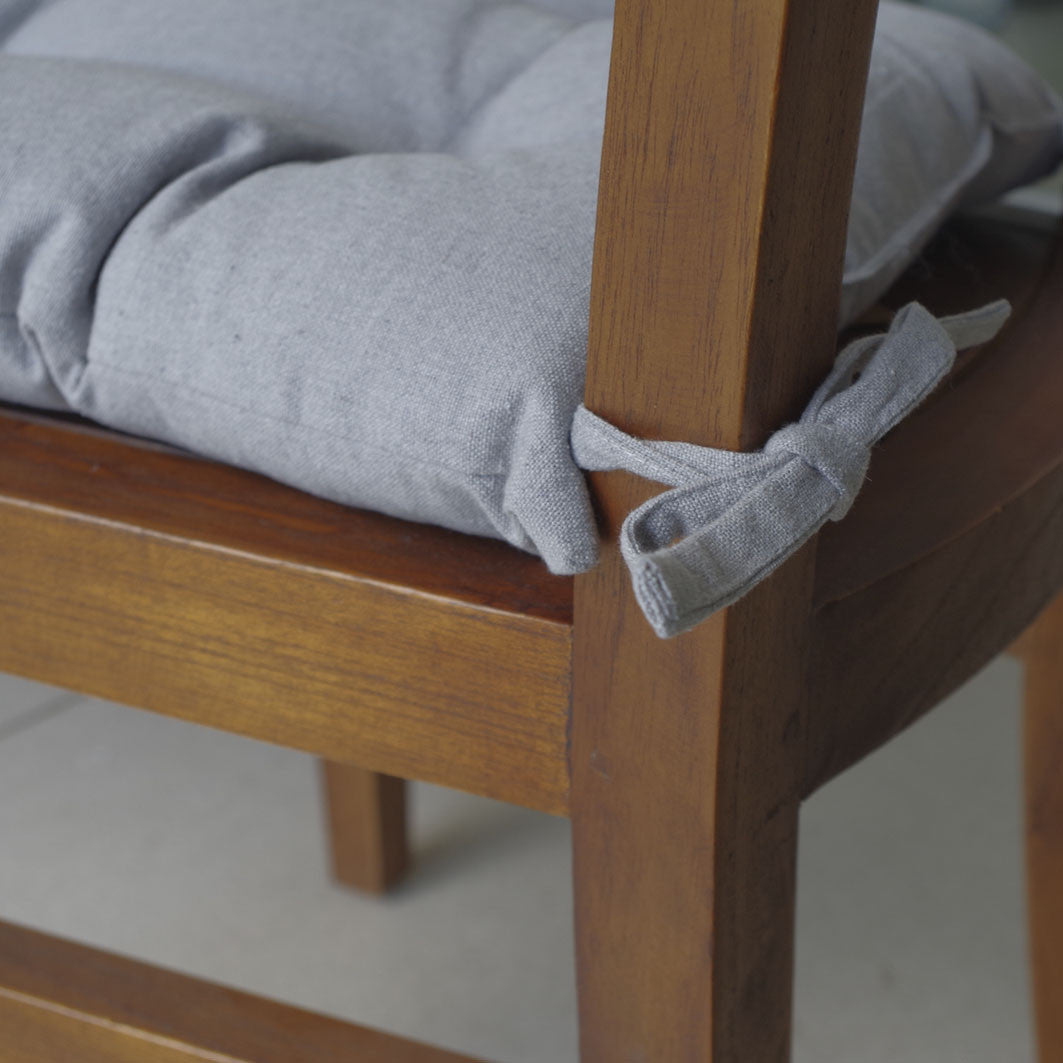 Sua construção 100% algodão garante alta durabilidade e seu enchimento em fibra proporciona o conforto que você procura. Além disso, possuem amarrações nos cantos que permitem fixá-los nas cadeiras.