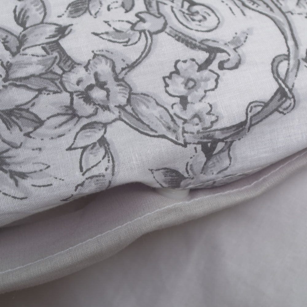 Possui abertura na parte inferior para facilitar a colocação do enchimento do edredão que é fechado com botões de pressão.