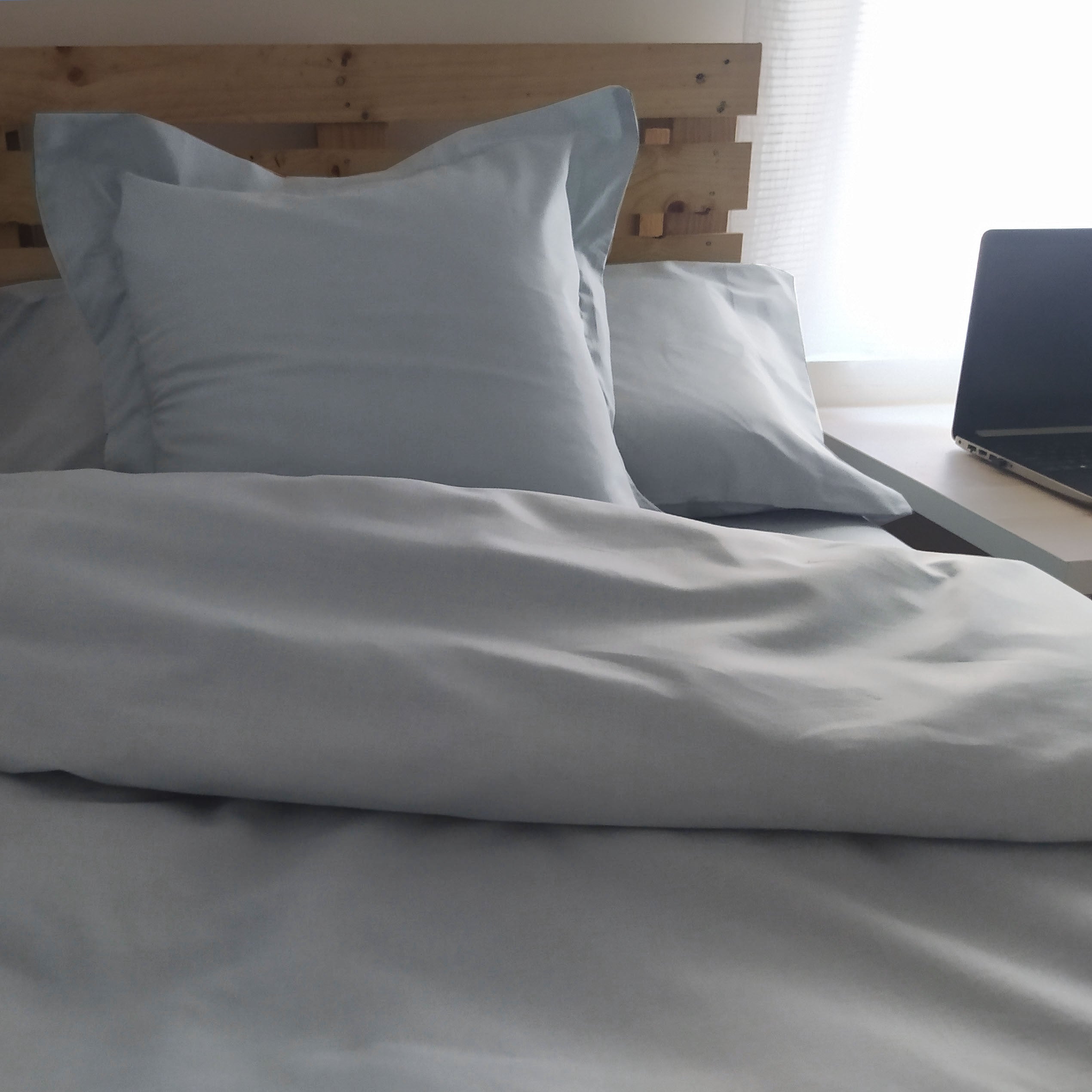 Conjunto de capa nórdica lisa e fronha de almofada à ton.