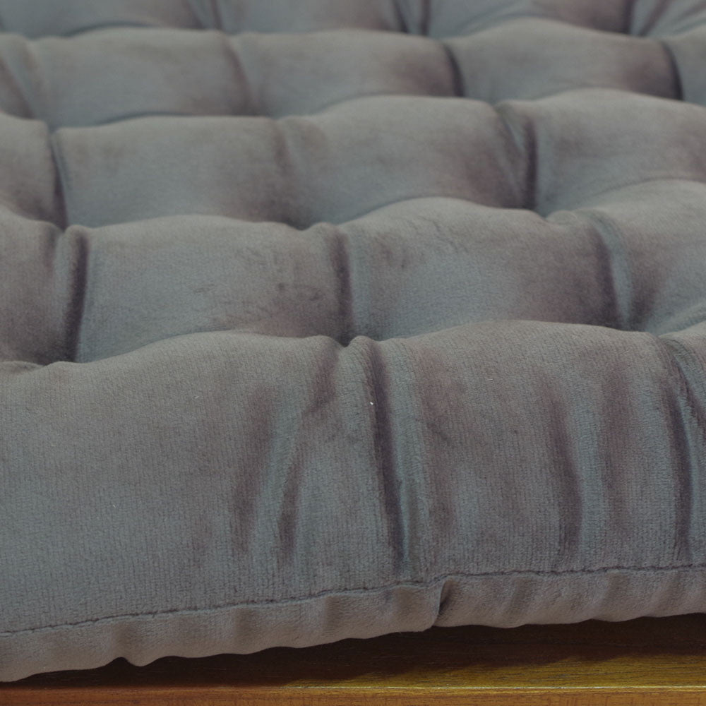 Sua construção em veludo 100% poliéster garante alta durabilidade e seu enchimento em fibra proporciona o conforto que você procura. Além disso, possuem amarrações nos cantos que permitem fixá-los nas cadeiras.