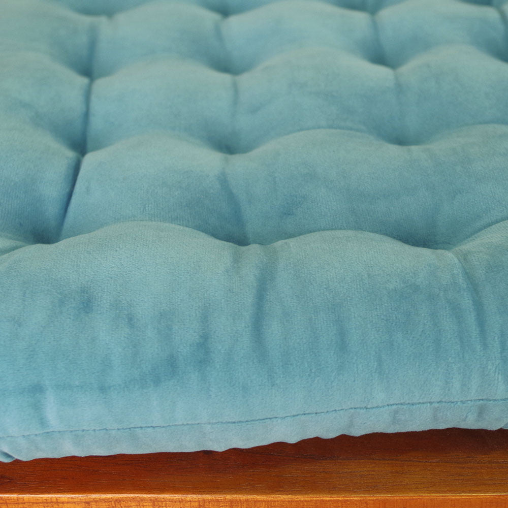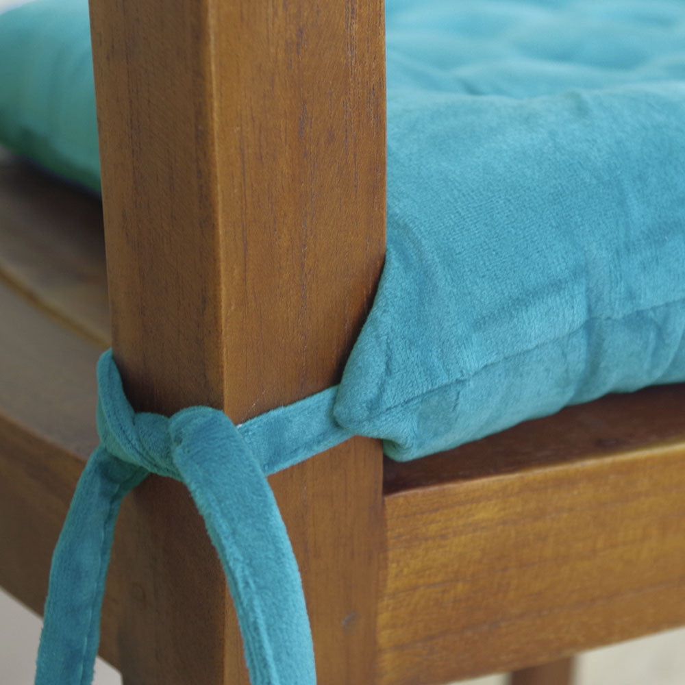 Sua construção em veludo 100% poliéster garante alta durabilidade e seu enchimento em fibra proporciona o conforto que você procura. Além disso, possuem amarrações nos cantos que permitem fixá-los nas cadeiras.