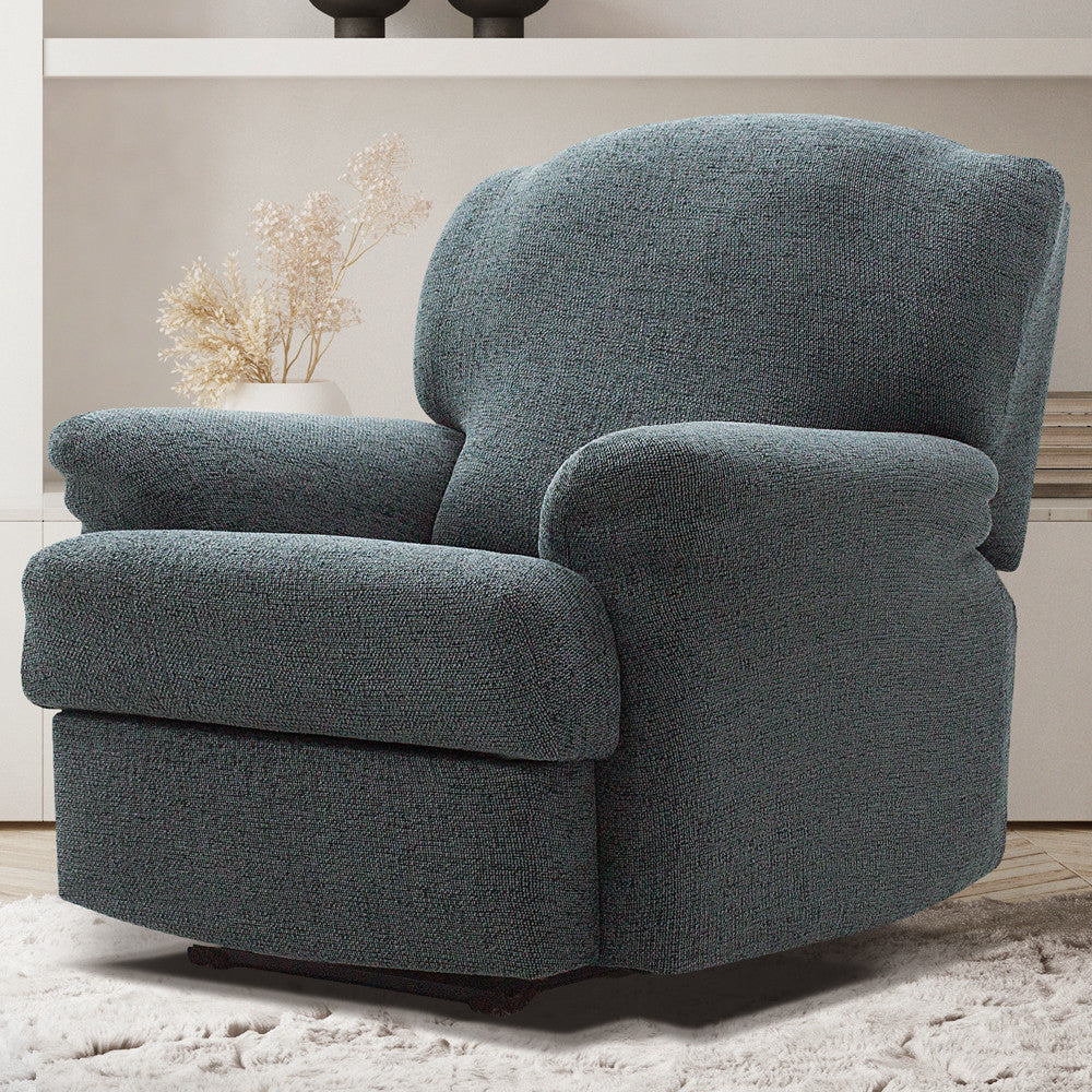 Capa para cadeiras com braços em tecido chenilla com grande elasticidade.