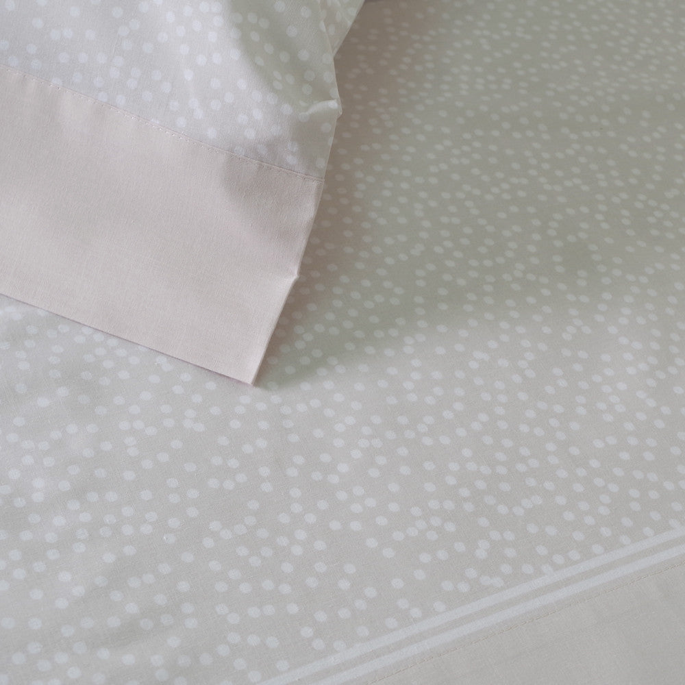 O lençol ajustável é entregue numa cor lisa que combina com o padrão.