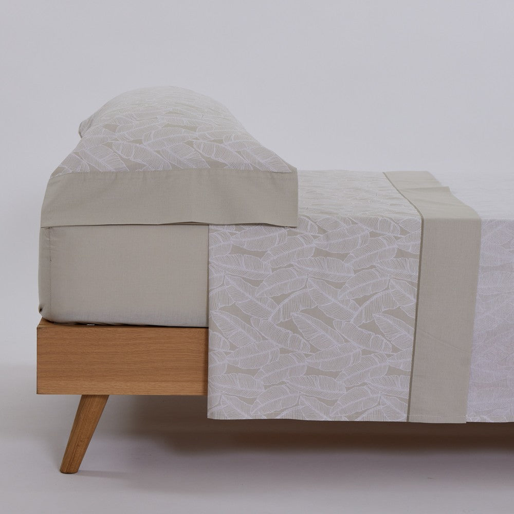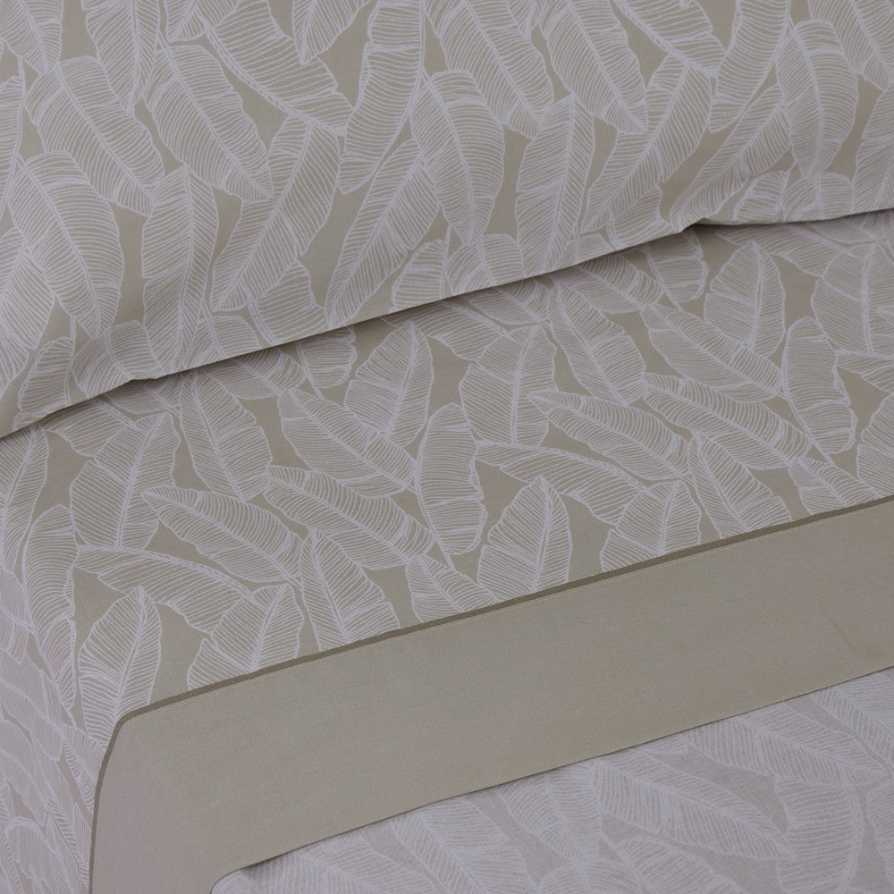 Conjunto de lençóis estampados composto por três peças: Lençol de cima, lençol de baixo ajustável e capa de almofada.
