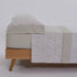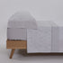 O conjunto é composto por uma bancada, um lençol de baixo adaptável (para colchões de até 30 cm de altura e 190/200 cm de comprimento) e uma fronha com duas aberturas.