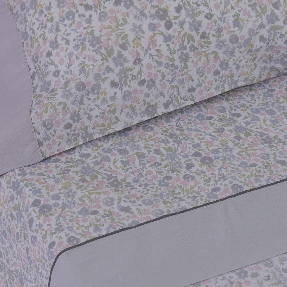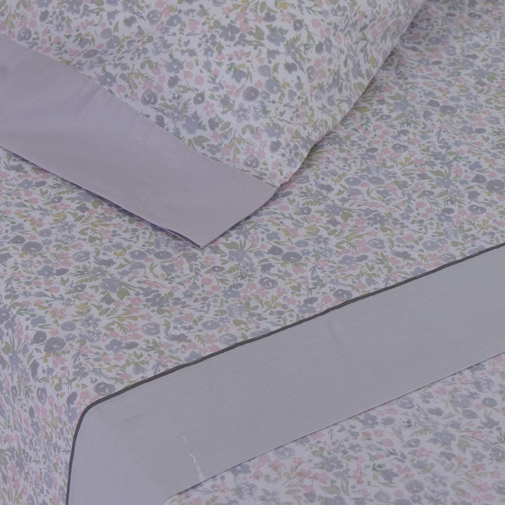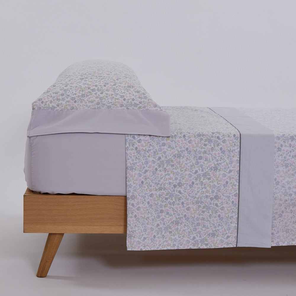 Conjunto de lençóis estampados composto por três peças: Lençol de cima, lençol de baixo ajustável e capa de almofada.