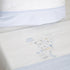 Conjunto de três peças para berço de bebé em flanela com desenho bordado, disponível em várias cores.