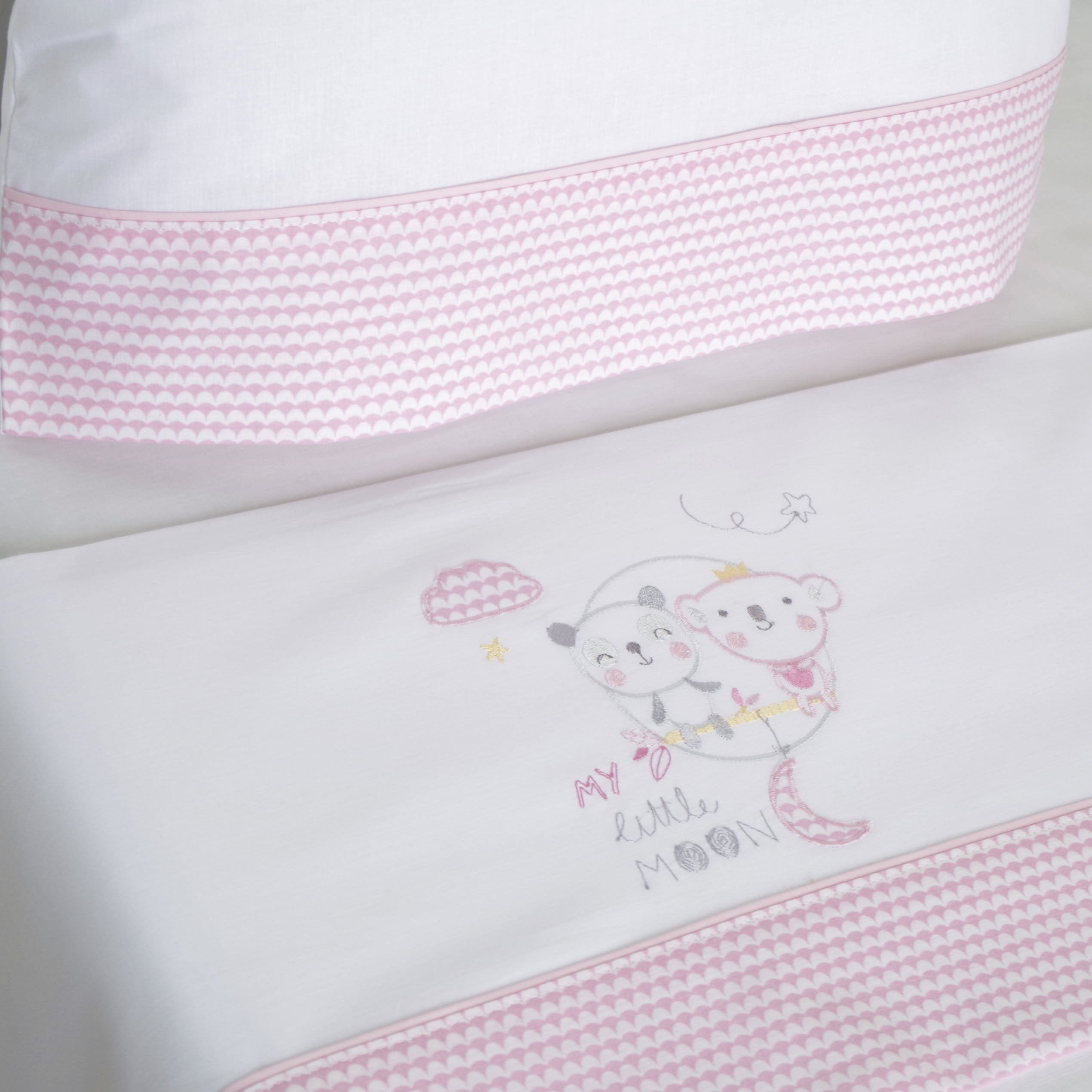 Conjunto de lençóis para berço Little Moon branco/rosa
