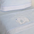 Conjunto de três peças para berço de bebé em coralina com desenho bordado e acabamento em popelina estampada de estrelinhas, disponível em várias cores.