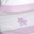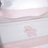 Conjunto de três peças para berço de bebé em flanela com desenho bordado, disponível em várias cores.
