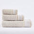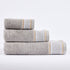 Conjunto de três toalhas com banda de jacquard decorativo.