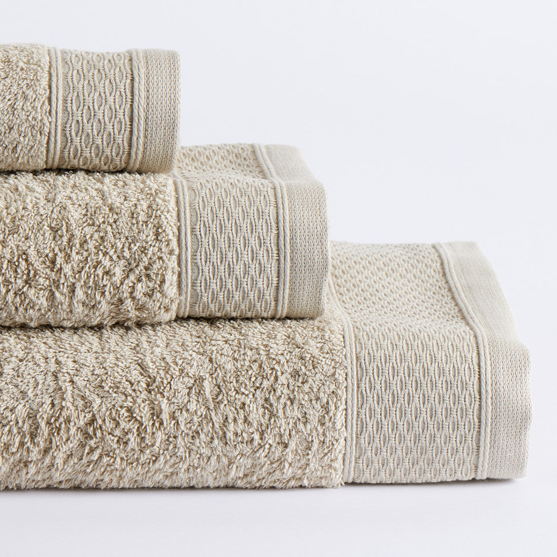 O seu tom delicado criará um efeito muito acolhedor na sua casa de banho. Além disso, eles têm uma borda que dá um toque muito original. Estas toalhas felpudas 100% algodão penteado oferecem uma grande delicadeza e suavidade ao toque, pelo que notará que mima e acaricia a sua pele sempre que as utiliza. Esta composição oferece alta durabilidade graças à sua composição e ótima absorção para reduzir o tempo de secagem.
