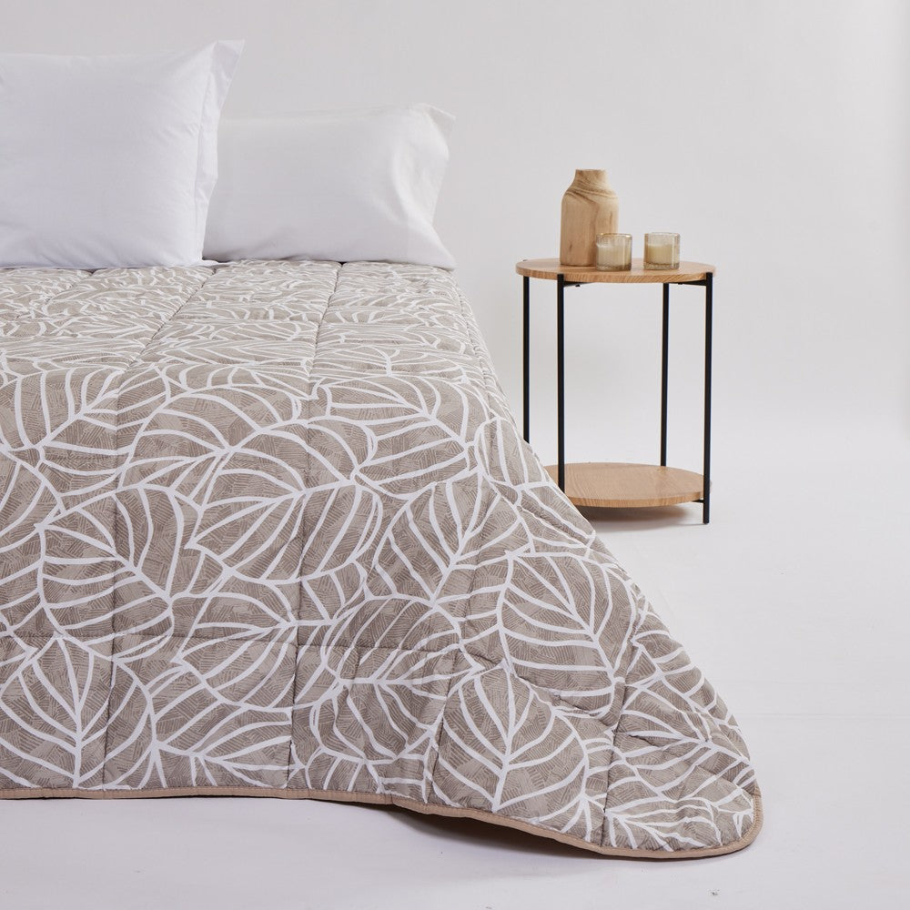 Edredão inteiro estampado e reverso liso em tecido de microfibra.