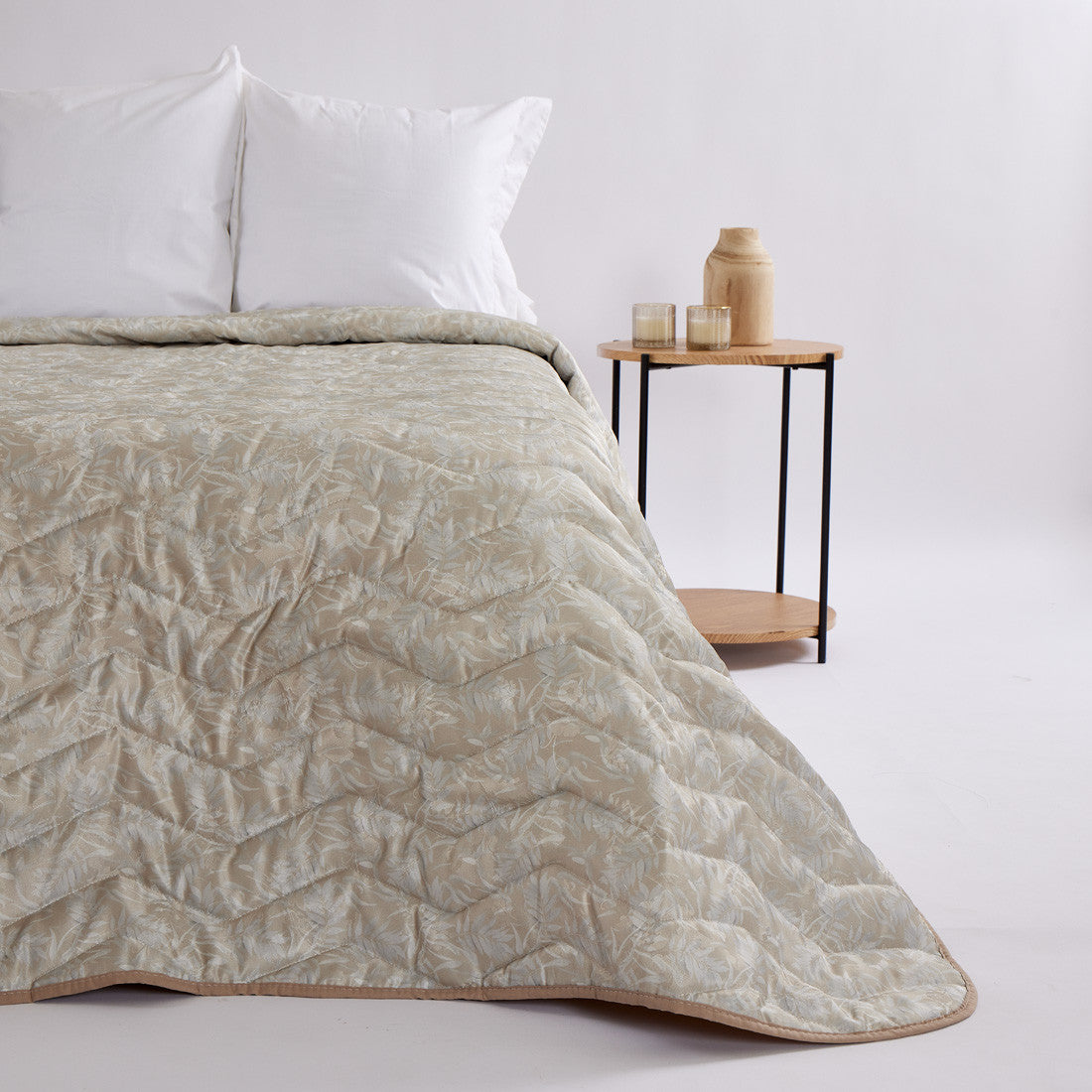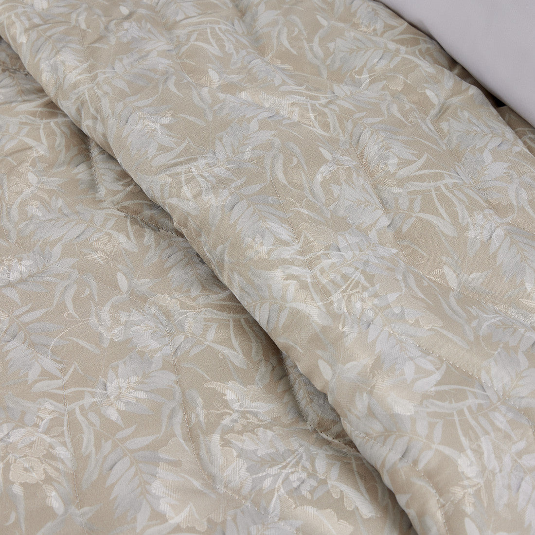 Edredão inteiro estampado sobre tecido jacquard e reverso liso.