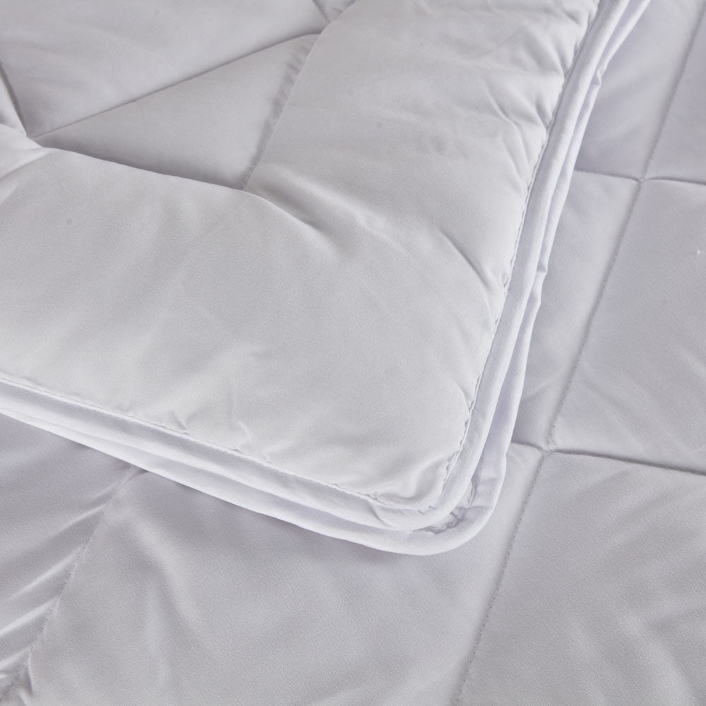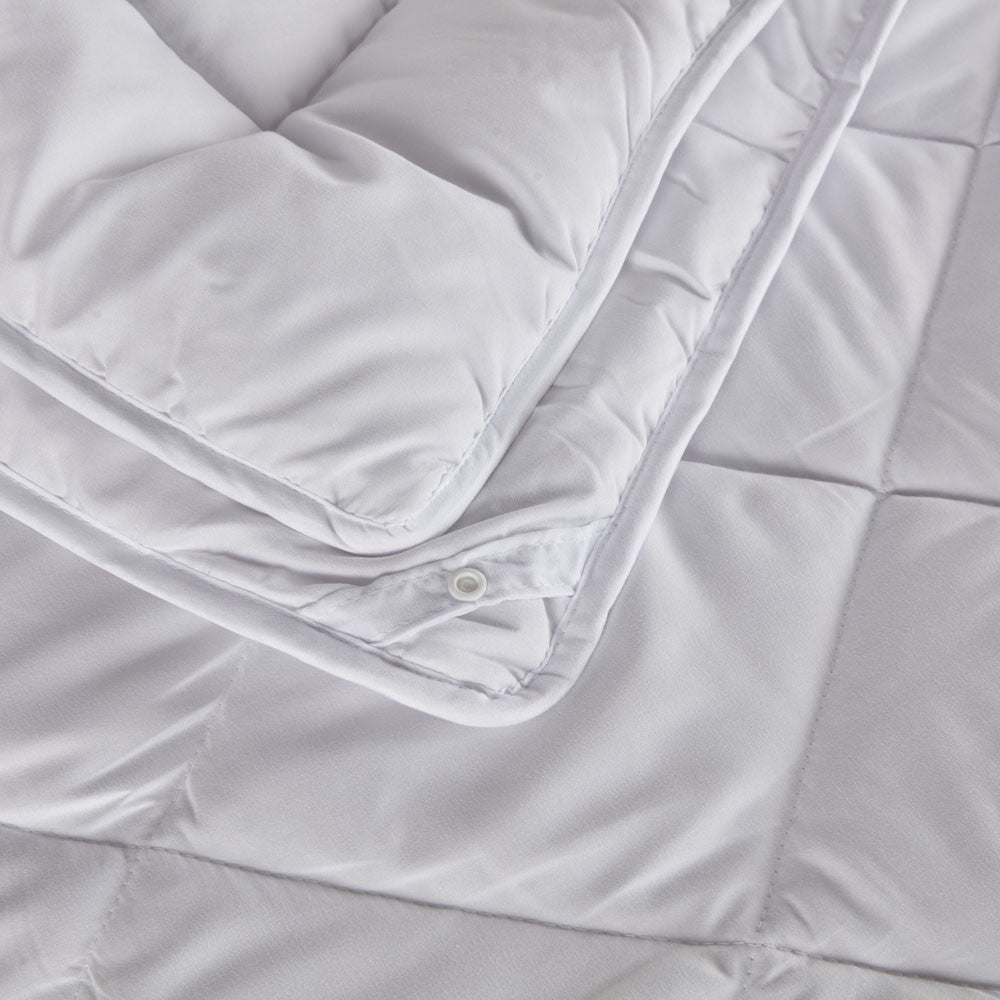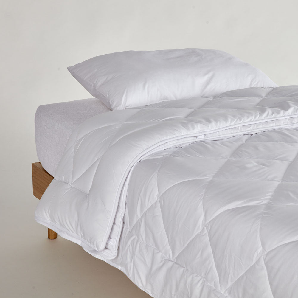 O edredão branco 4 estações é ideal para todas as estações, pois é composto por duas colchas de gramagens diferentes, uma de 250 g/m² e outra de 150 g/m², que podem ser unidas através dos botões de pressão nos cantos. As duas colchas podem ser separadas e combinadas para se adequarem às suas necessidades, dependendo da estação do ano. O edredão de microfibra é suave ao toque. Está disponível em três tamanhos, dependendo do tamanho da sua cama.