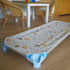 Lençol com elástico para o baloiço empilhável do quarto do bebé, em azul com estampado FOX.