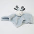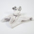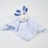 Pequeno cobertor de 30 centímetros de largura x 30 centímetros de largura com uma cabecinha de peluche.