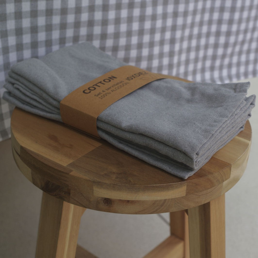 Pack de 4 guardanapos em tecido de algodão de cor lisa.