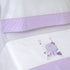 A primeira cama do seu bebê merece o melhor conjunto de lençóis. Apaixone-se por este conjunto de três peças para berço de bebê em branco e lilás e bordados exclusivos que adornam o berço do seu filho. O conjunto de lençóis possui uma textura macia para que o bebê se sinta confortável enquanto dorme. Queremos cuidar da sua pele e é por isso que optamos pelos melhores materiais que garantem a mais alta qualidade . Seu bebê merece o melhor.