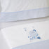 Conjunto de três peças para berço de bebé em algodão 100% com desenho bordado, disponível em várias cores.