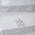 Conjunto de três peças para berço de bebé com desenho bordado, disponível em várias cores.