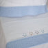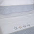 Conjunto de três peças para berço de bebé em algodão 100% com desenho bordado no centro, disponível em duas cores, aplique em emboço a contraste com estrelinhas estampadas.
