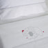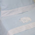 Conjunto de três peças para berço de bebé em flanela com desenho bordado, disponível em várias cores.