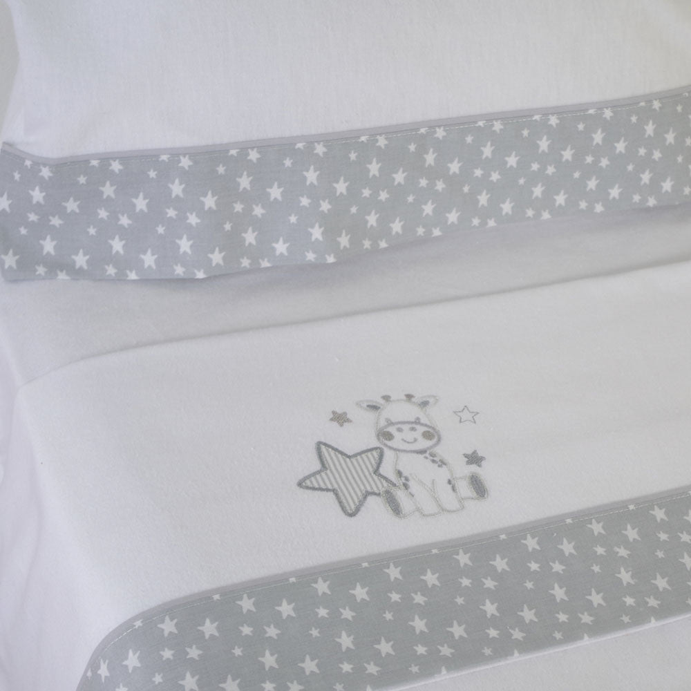 Jogo de lençóis de flanela girafa 378 branco/cinza