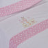 Conjunto de três peças para berço de bebé em flanela com desenho bordado, disponível em várias cores.