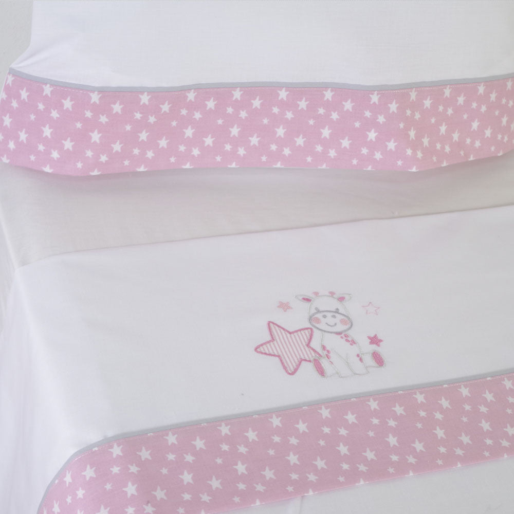 Jogo de lençóis para berço girafa 378 branco/rosa