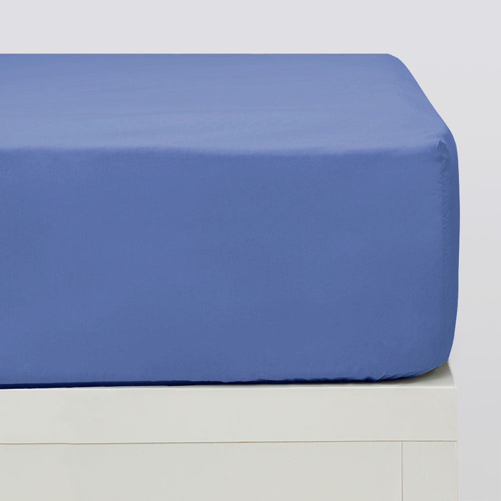 Lençol de baixo com quatro pontos de ajuste elásticos, adaptável. Disponível em várias cores lisas. Composição: 50 % poliéster, 50 % algodão.