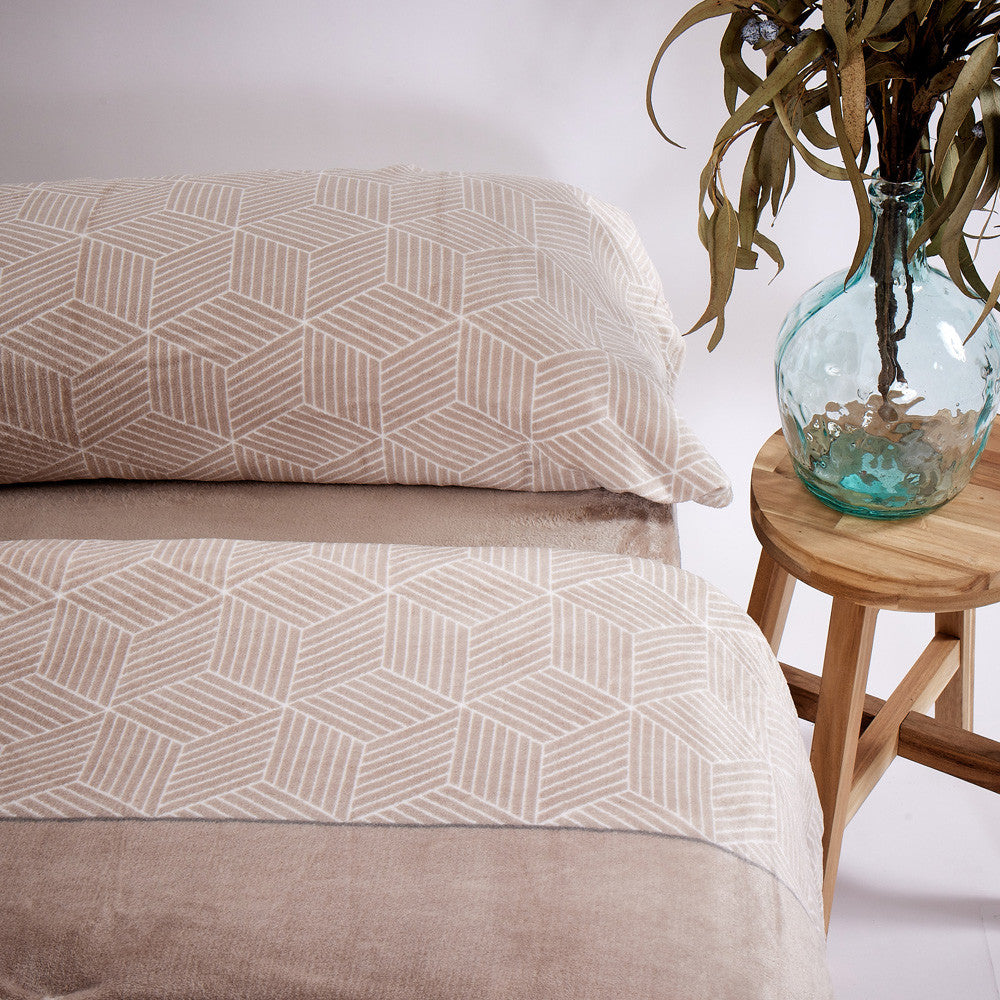 Jogo de três peças de lençol de SEDALINA estampada e lençol liso.