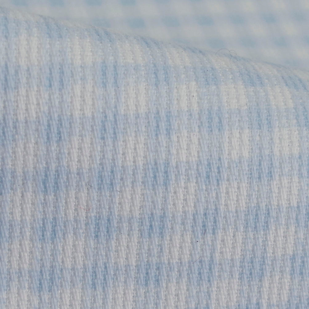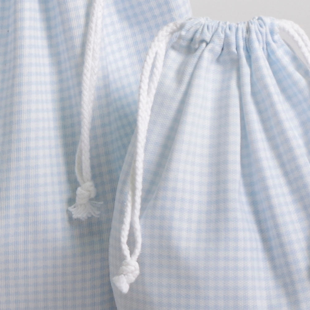 Disponível em três padrões diferentes: xadrez vichy azul claro, bege claro e azul marinho às riscas.