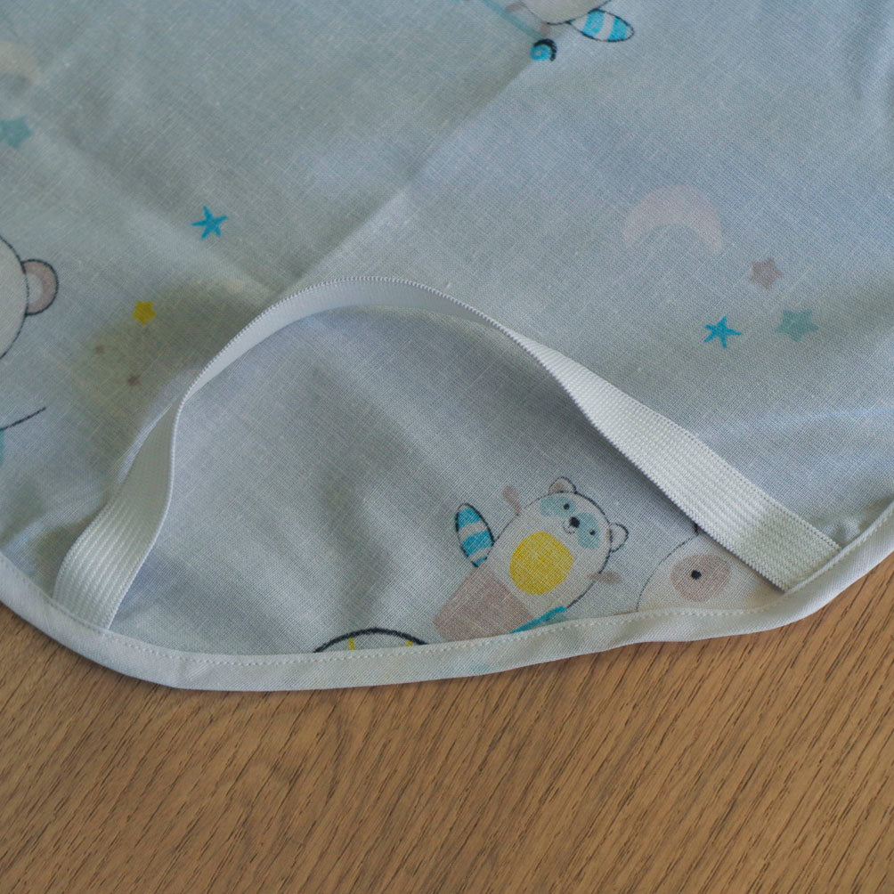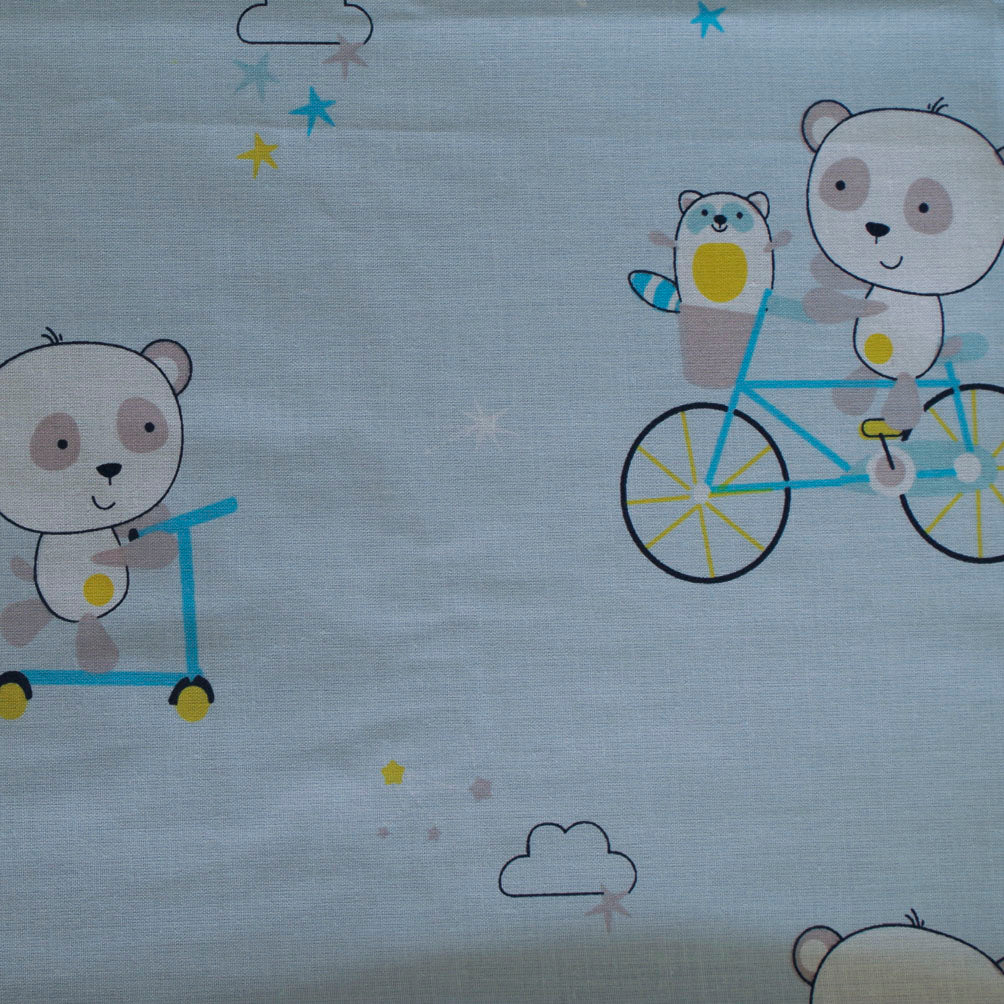 Lençol com elástico para a rede empilhável do quarto do bebé, em azul com estampado PANDA.