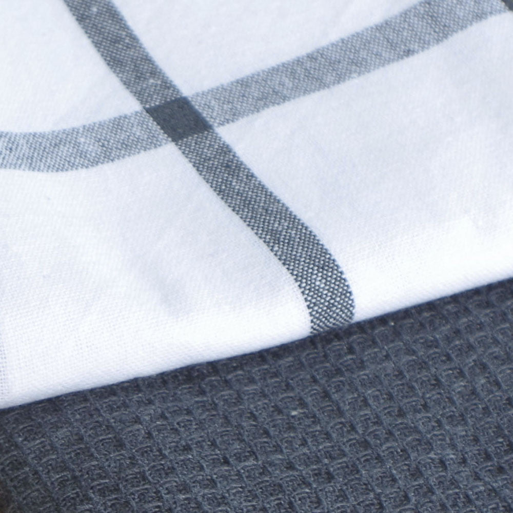 Pack de 2 unidades de panos de cozinha em lona COTTON na cor branca e cinza chumbo.