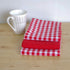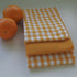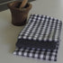Pack de 3 panos de cozinha em tecido de algodão, dois panos em quadrado vichy e um pano liso com textura de ninho de abelha.
