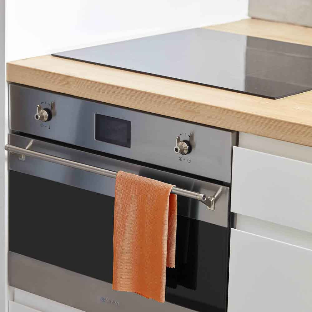 Uma pano de tecido único composto por microfibras ativas de grande poder absorvente e limpador de cor laranja, assim poderá identificar cada pano para utilizar nas diferentes divisões da casa.