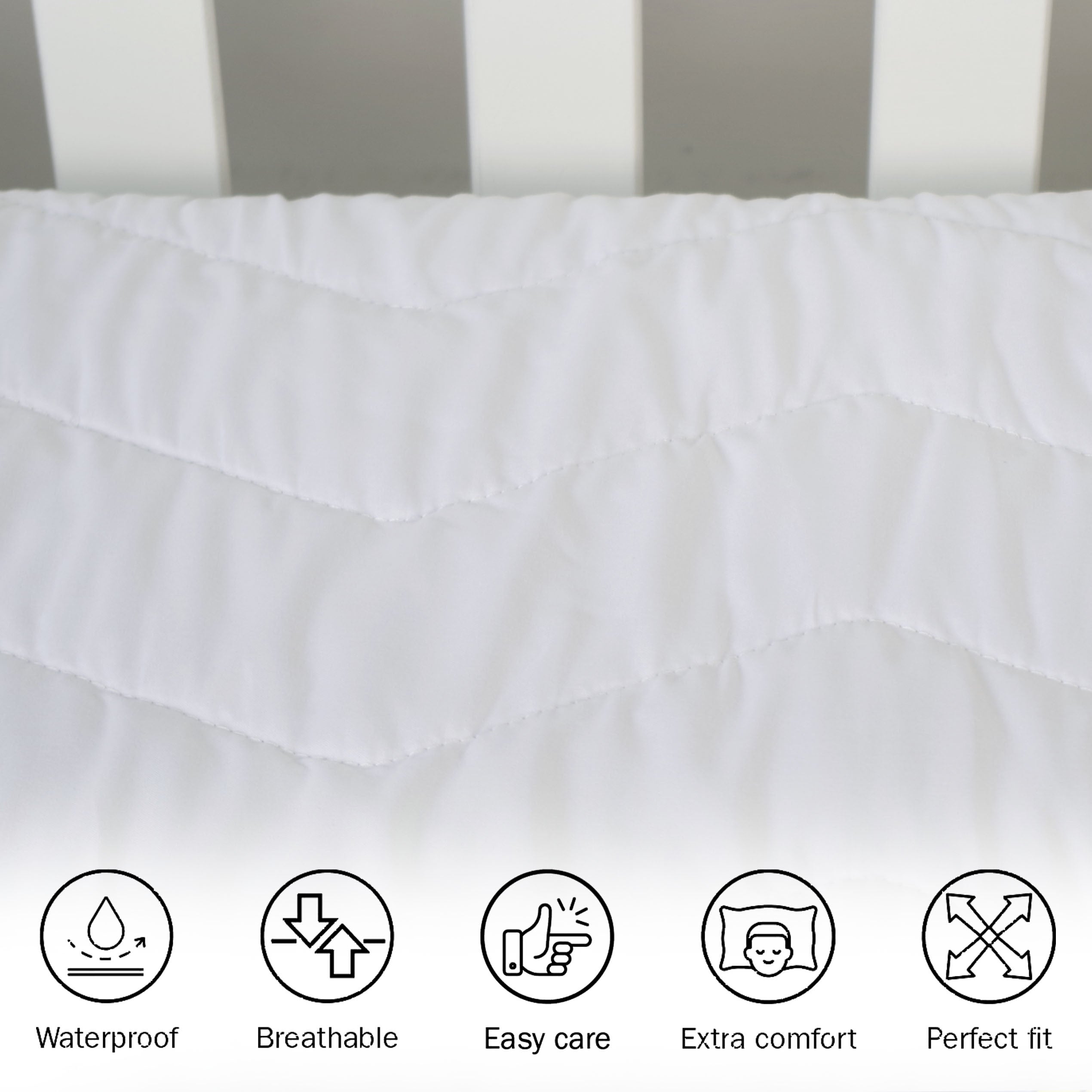 Proteja o colchão do seu bebê com este protetor de colchão de berço. Os bebês passam muito tempo no berço, na hora de dormir ou na soneca, ou em horários específicos do dia, especialmente quando são muito jovens. Portanto, é importante que este espaço esteja sempre limpo, protegido e livre de bactérias. Graças a este protetor de berço, o colchão do seu bebê estará sempre livre de ácaros, pois foi especialmente projetado para esta função.