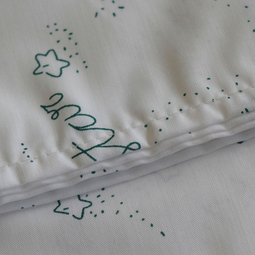 Lençol ajustável para a rede empilhável do berçário na cor branca.