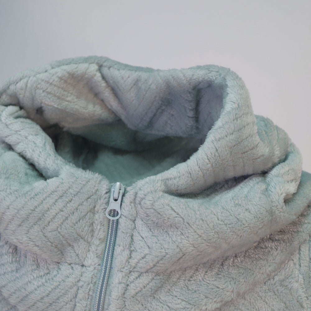 Você está cansado de sentir frio durante aqueles longos dias de inverno? Para isso temos uma boa proposta, o vestido de coral. Este produto na cor jade é um modelo unissex. Graças ao seu design, você pode desfrutar do máximo calor e suavidade oferecidos por sua composição 100% poliéster. É uma peça extremamente agradável e leve para a pele. Com este modelo de vestido mais curto e os bolsos em ambos os lados você pode ter maior conforto. Com este maravilhoso roupão poderá desfrutar das noites mais frias de inverno em casa.