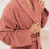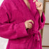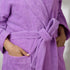 O roupão de banho americano clássico lilás maciço tornará seu banho ainda mais reconfortante. Uma peça fofa do mais suave graças à sua composição 100% algodão. O peso do roupão é de 450 gr/m2, o que lhe proporcionará uma secagem rápida e absorvente. Graças a esta peça de roupa pode desfrutar dos melhores e mais agradáveis duches.