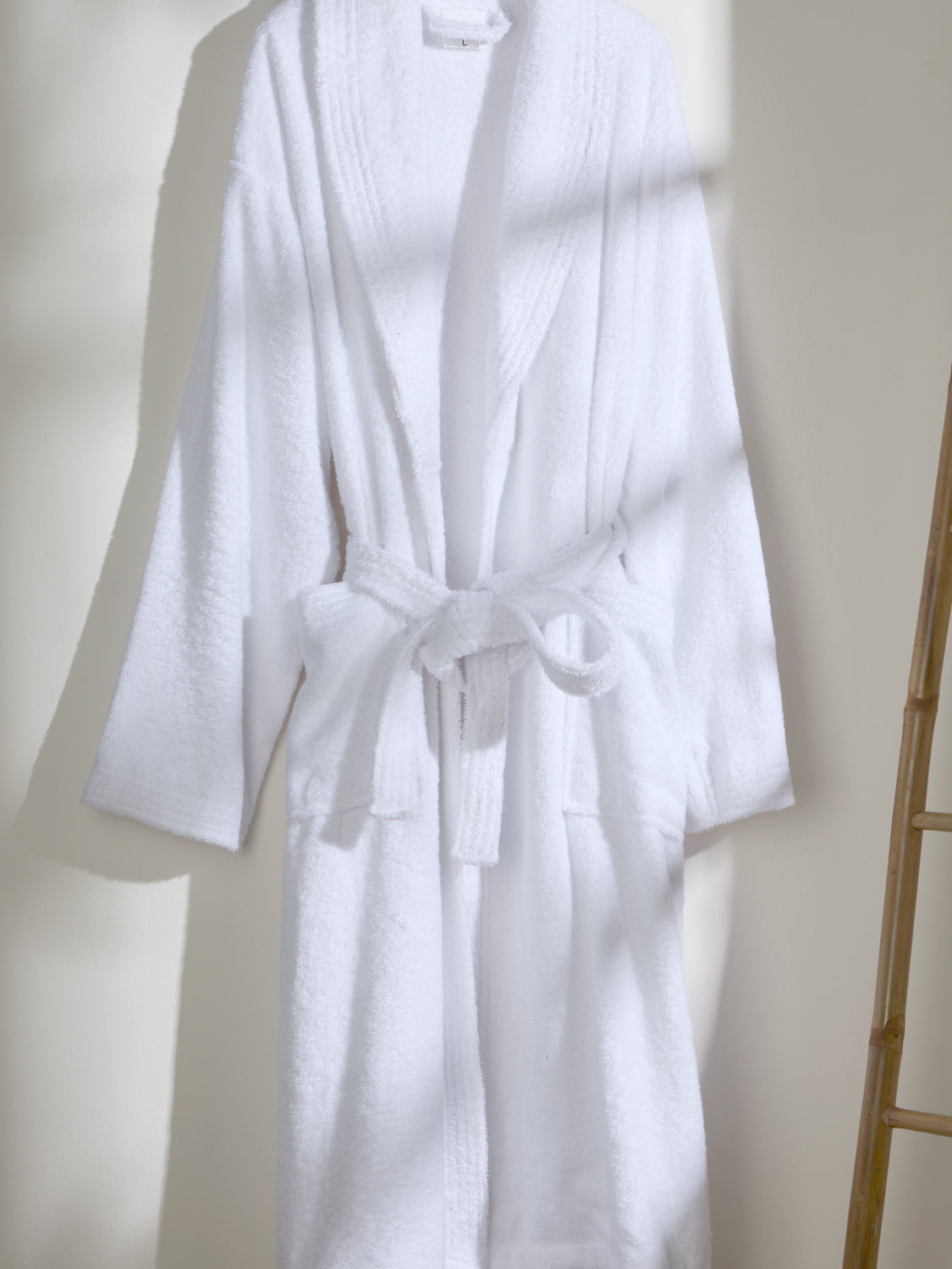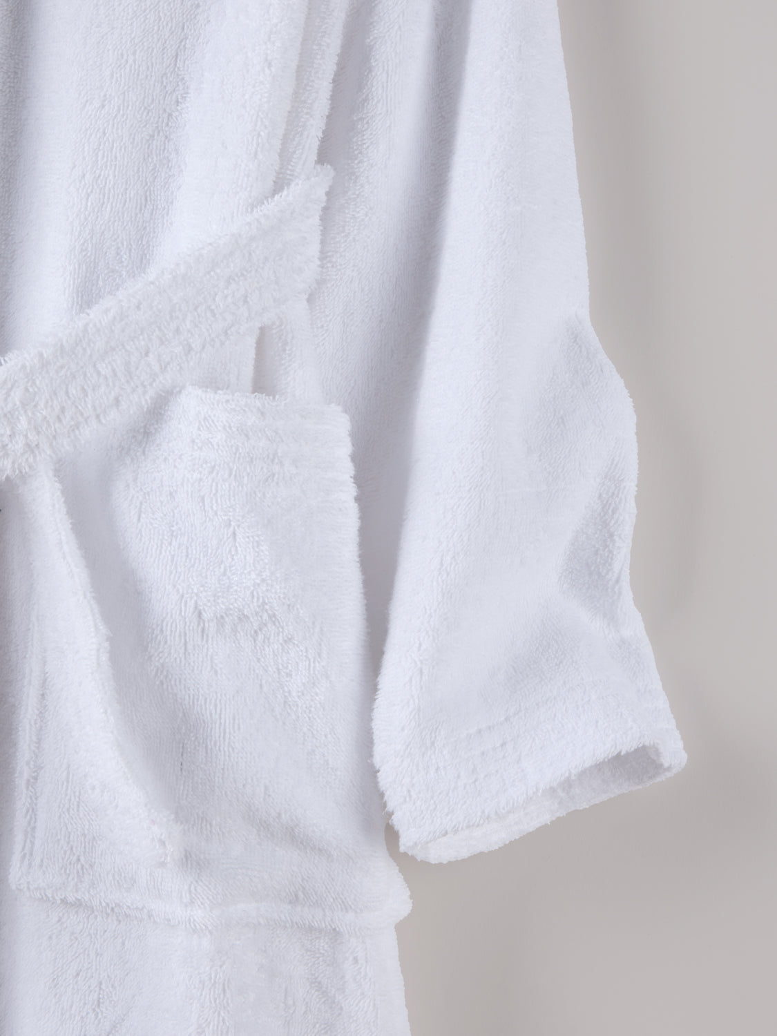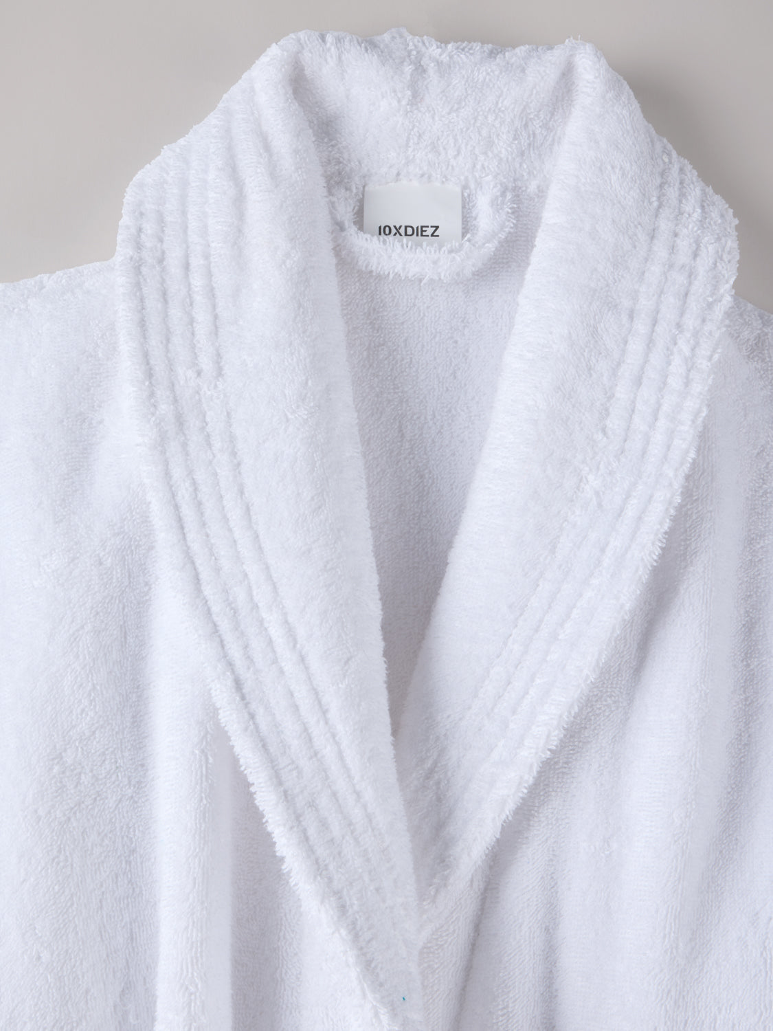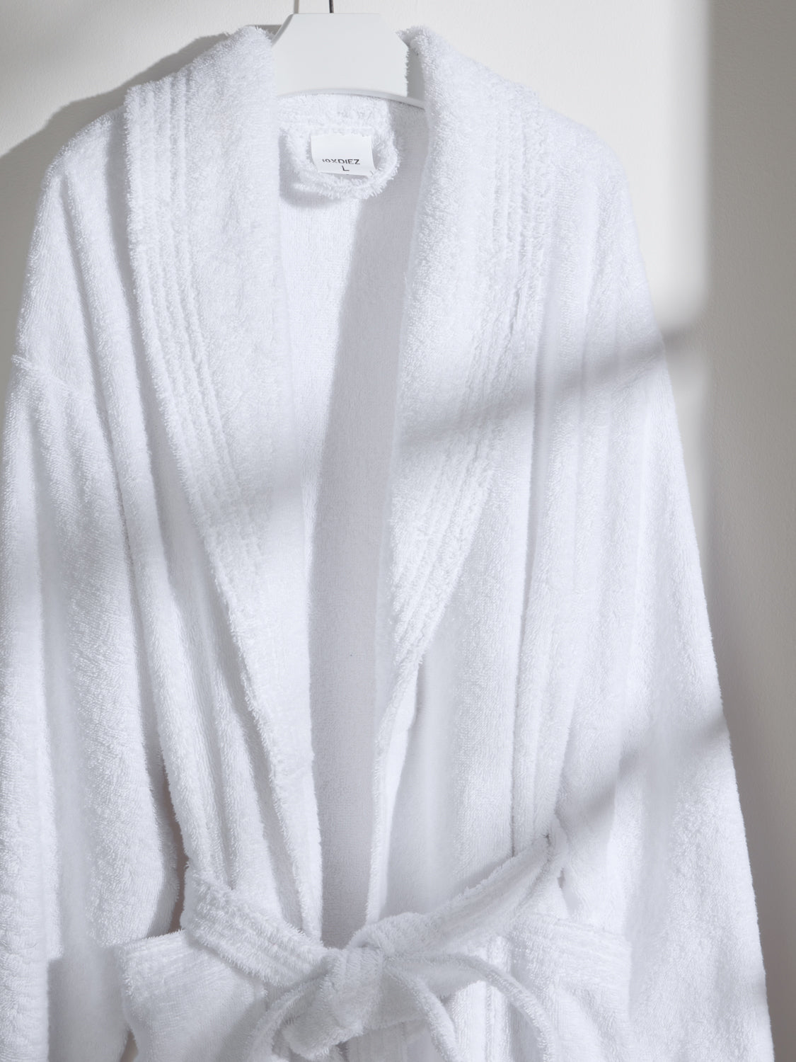 O clássico roupão American Terry branco liso tornará seu banho ainda mais reconfortante. Uma peça fofa do mais suave graças à sua composição 100% algodão. O peso do roupão é de 450 gr/m2, o que lhe proporcionará uma secagem rápida e absorvente. Graças a esta peça de roupa pode desfrutar dos melhores e mais agradáveis duches.