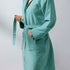 Um roupão de banho em microfibra de alta qualidade e cor lisa.
