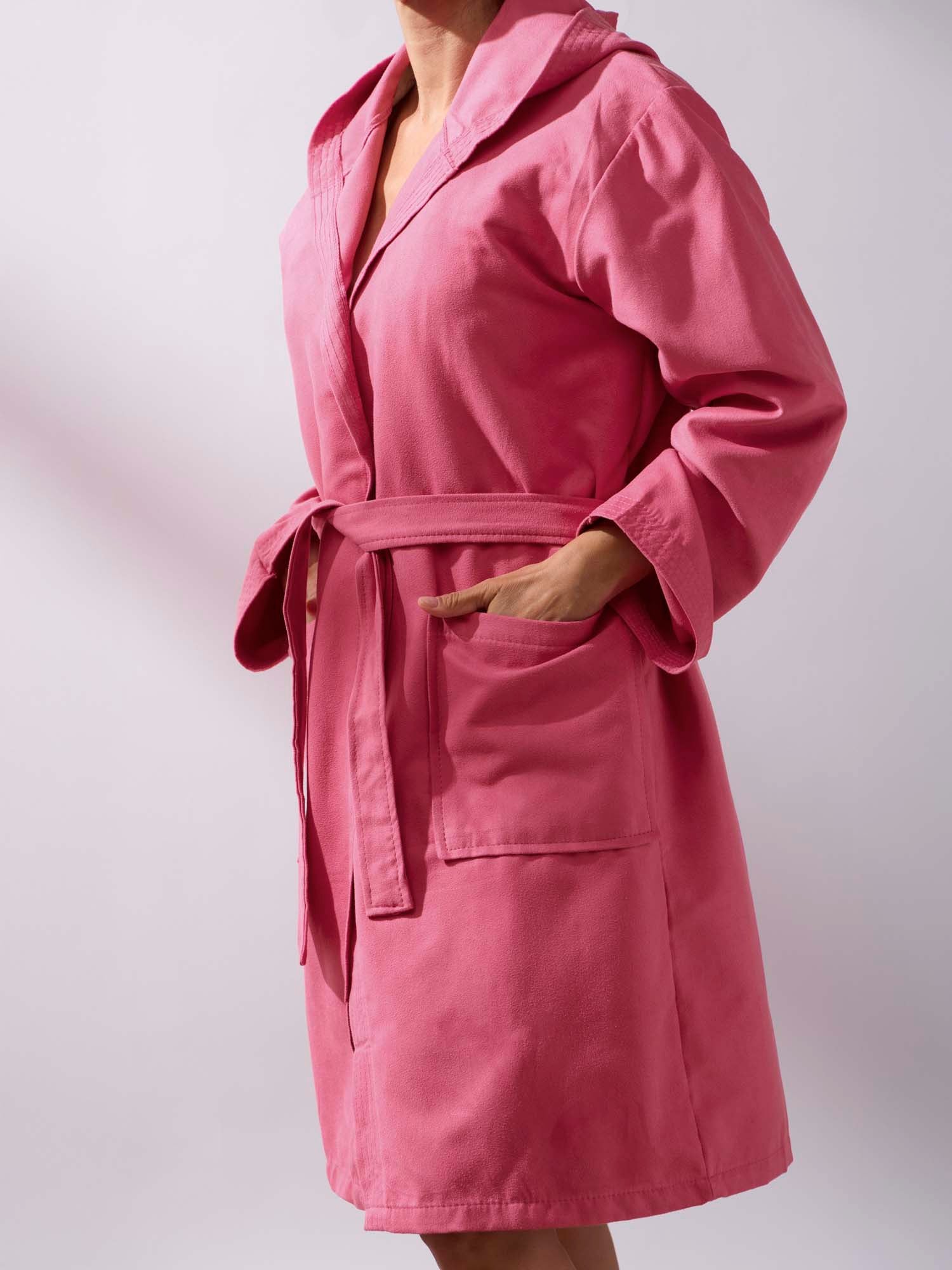 Roupão de banho adulto em microfibra cor morango