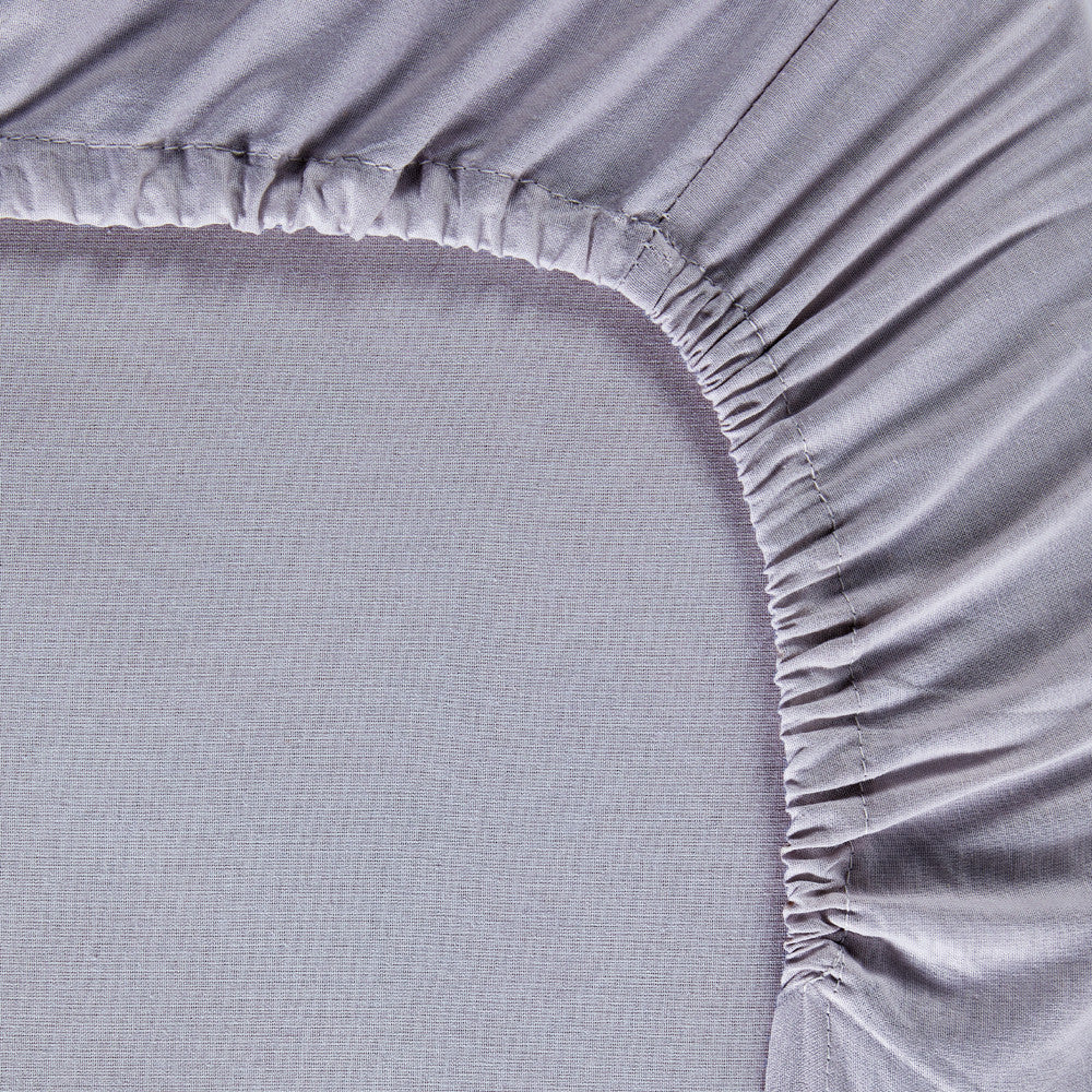 O lençol ajustável é de cor lisa de acordo com o estampado.
