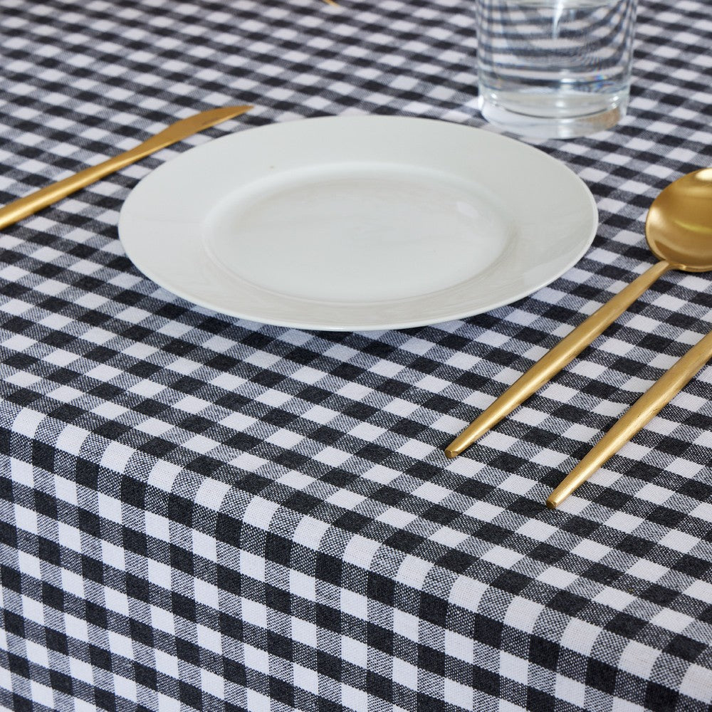 Toalha de mesa xadrez vichy na cor carvão em tecido de algodão.
